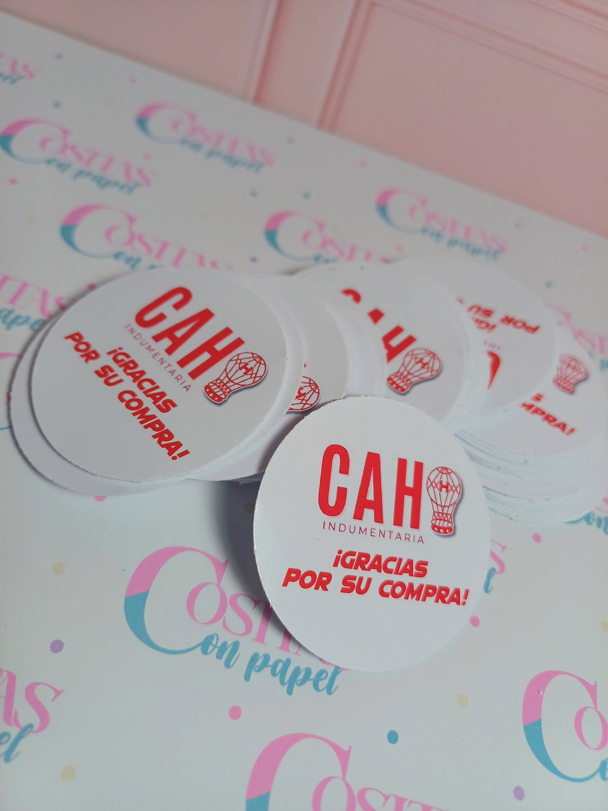 Ideales para colocar tu logo o frases como "Ya llegué", "Gracias por tu compra", se pueden hacer surtidos!