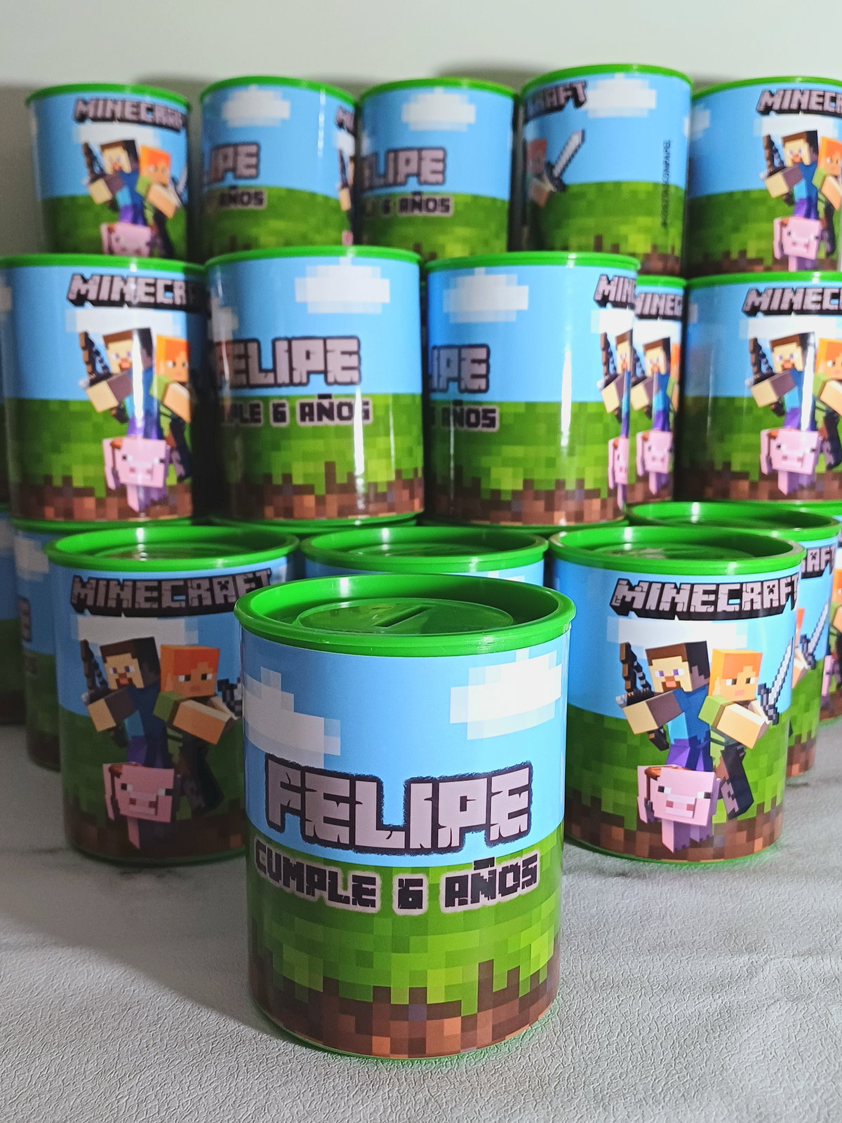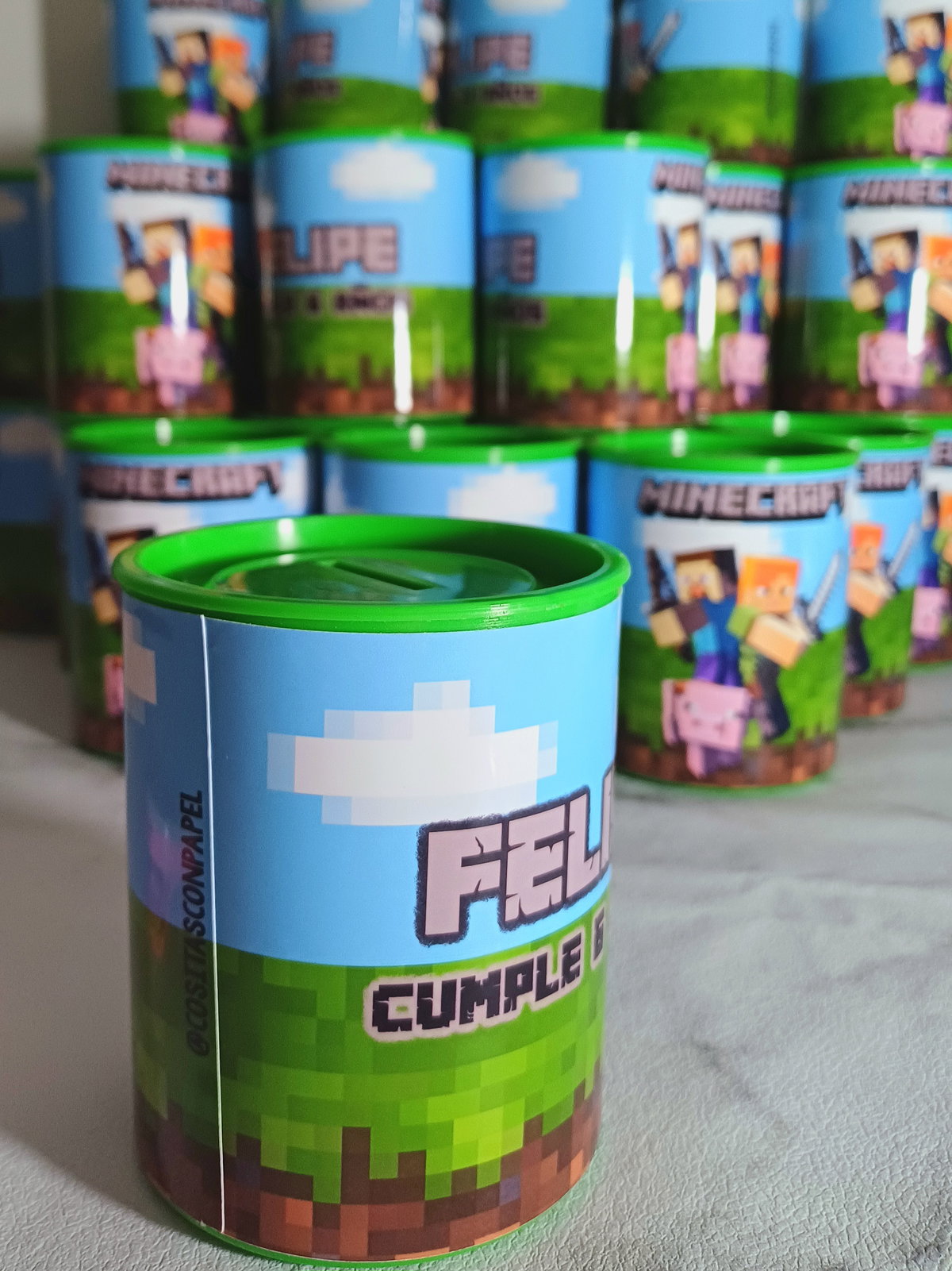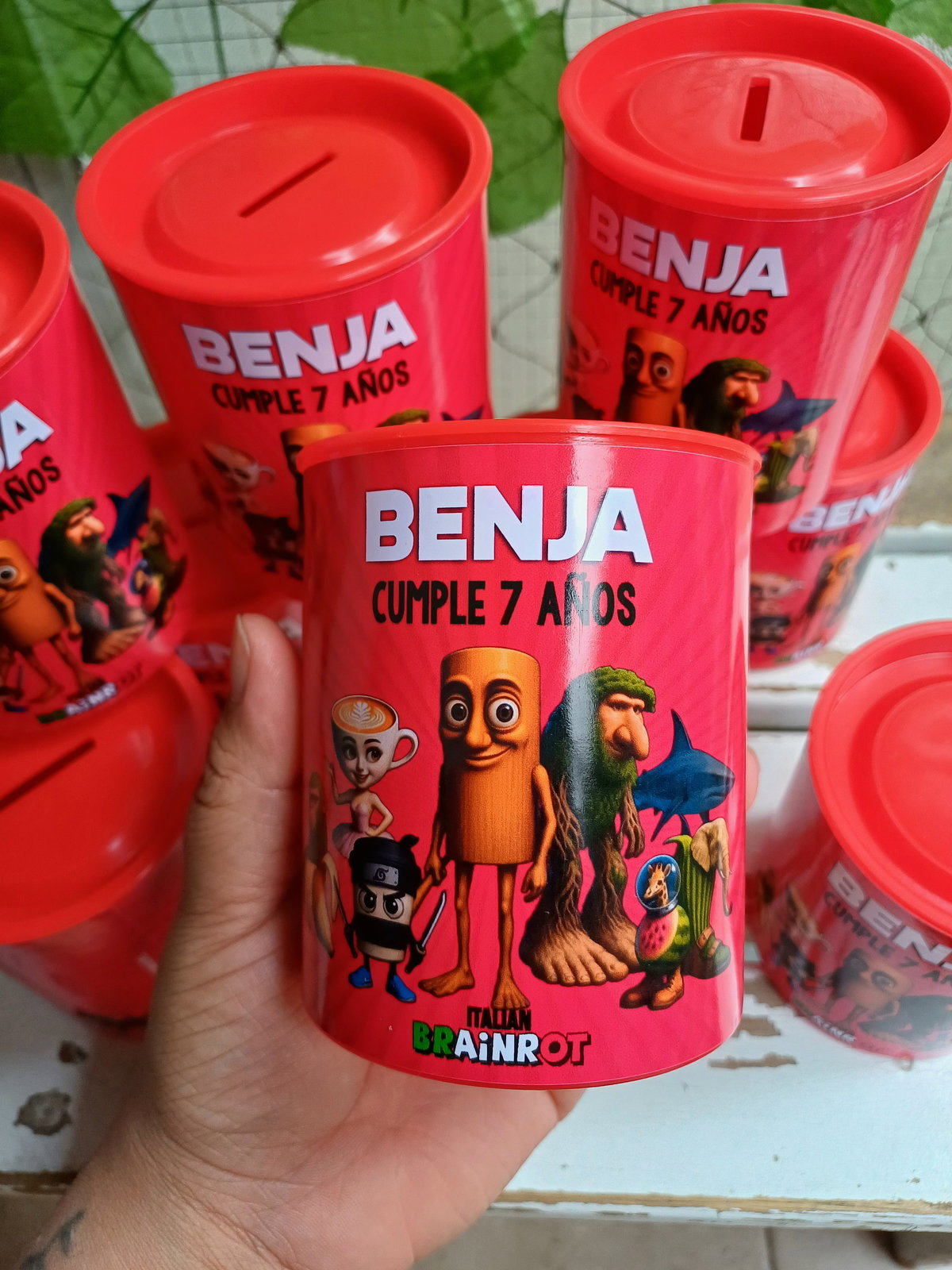 Etiqueta impresa en Alta Calidad brillante que envuelve toda la alcancía.