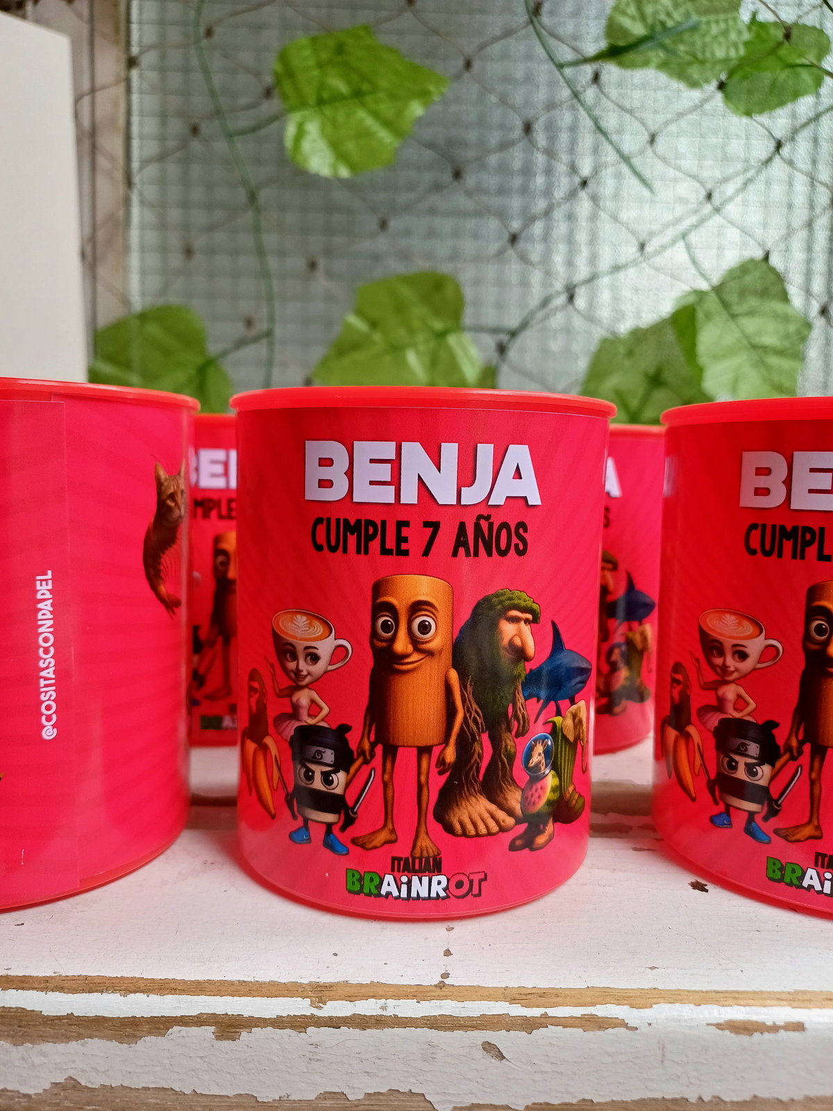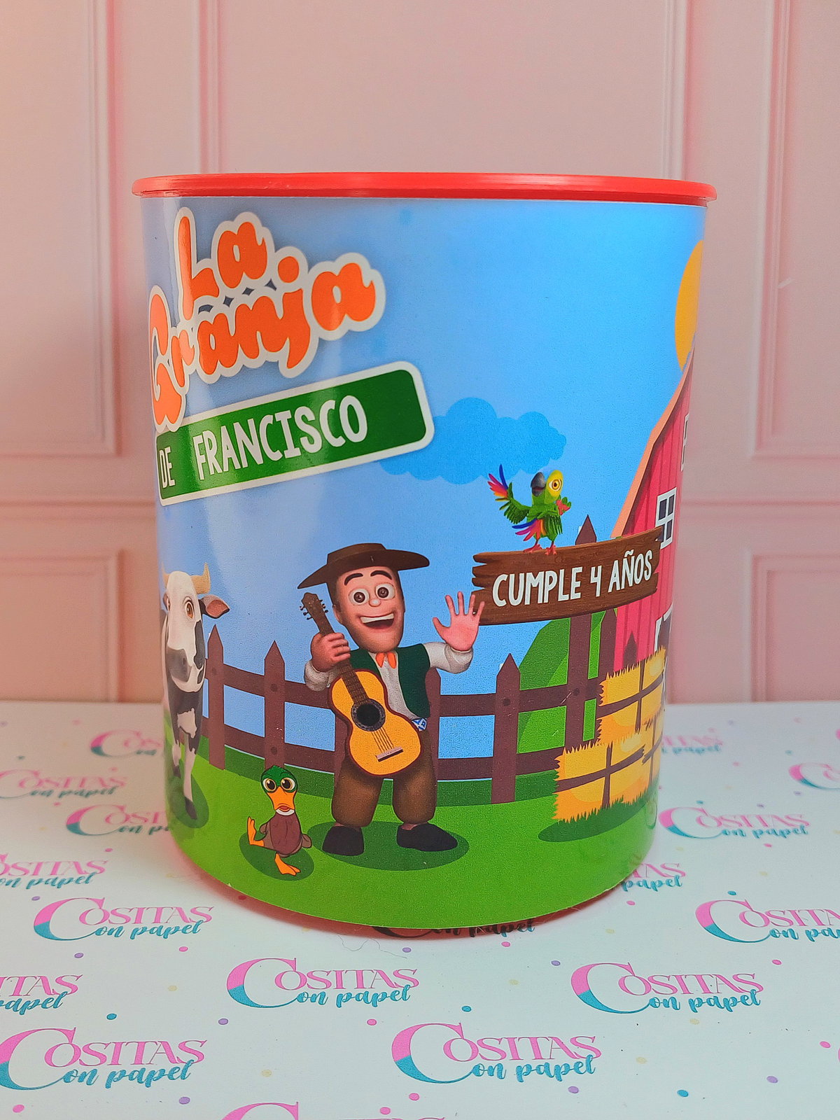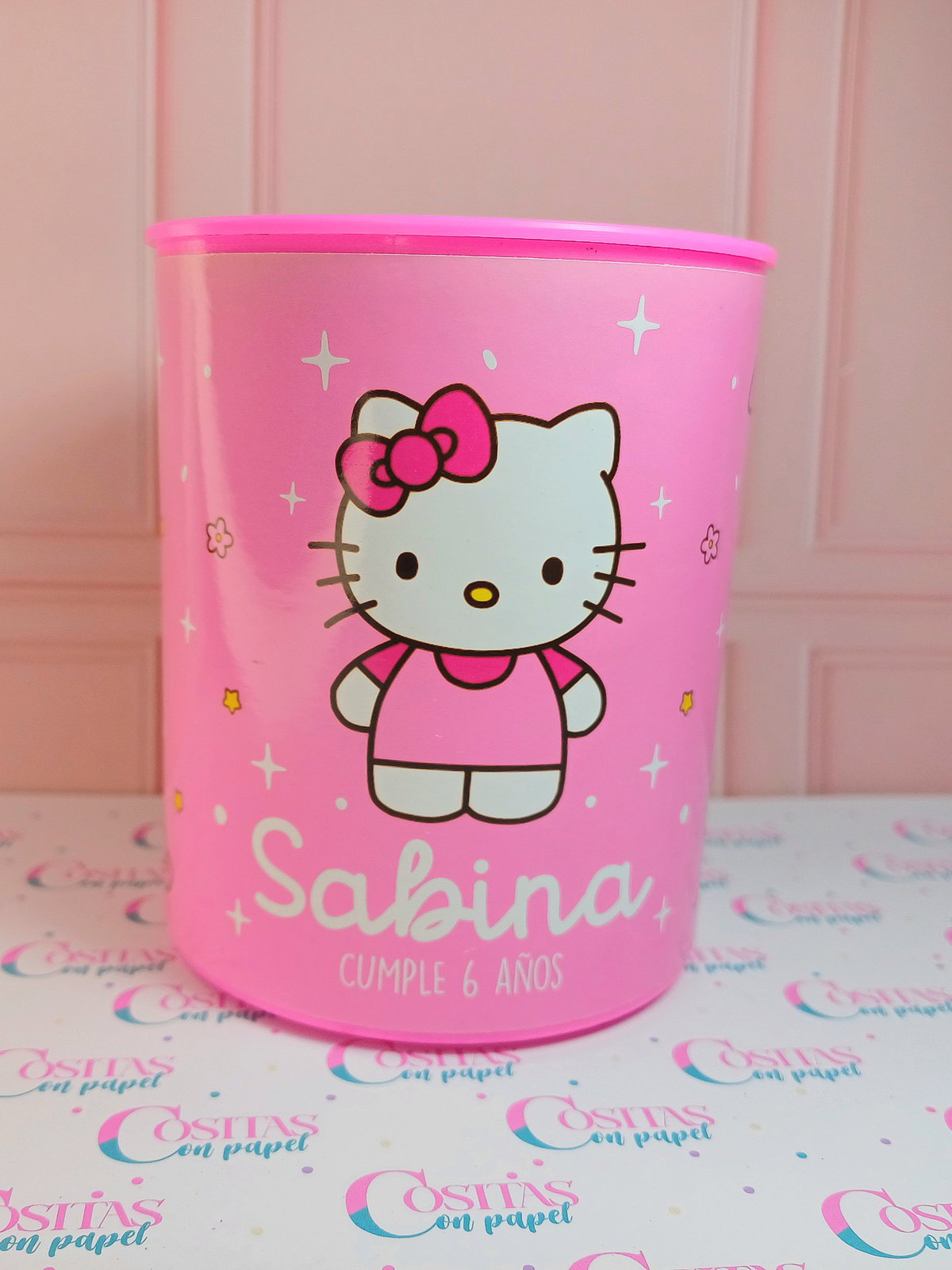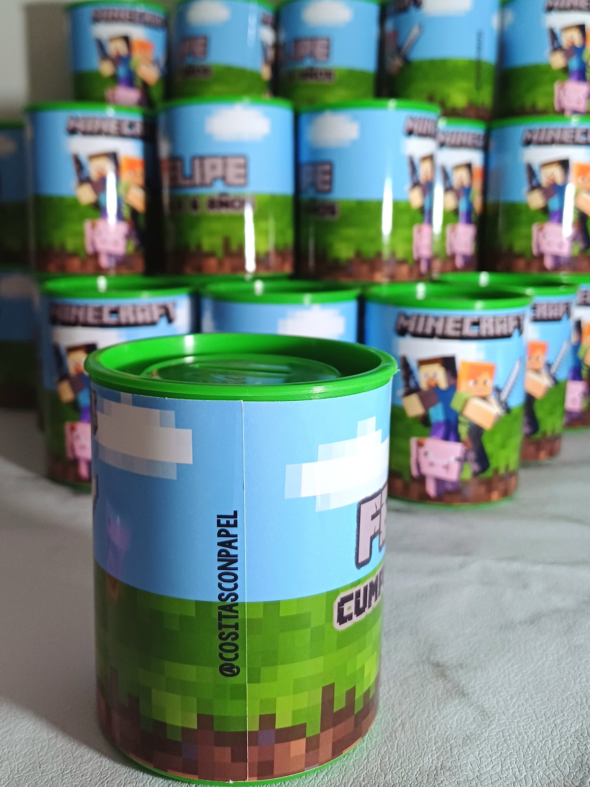 Etiqueta impresa en Alta Calidad brillante que envuelve toda la alcancía.