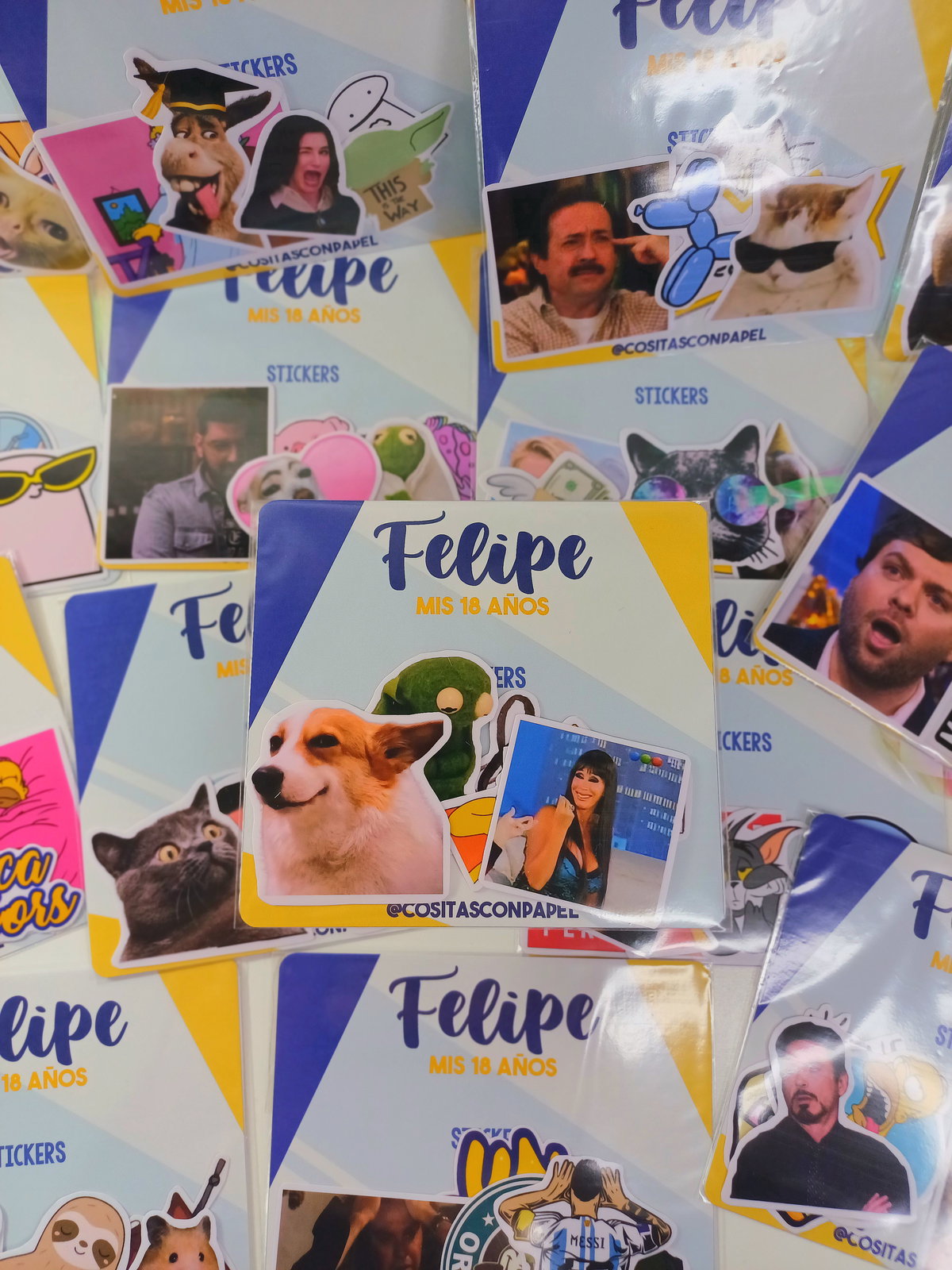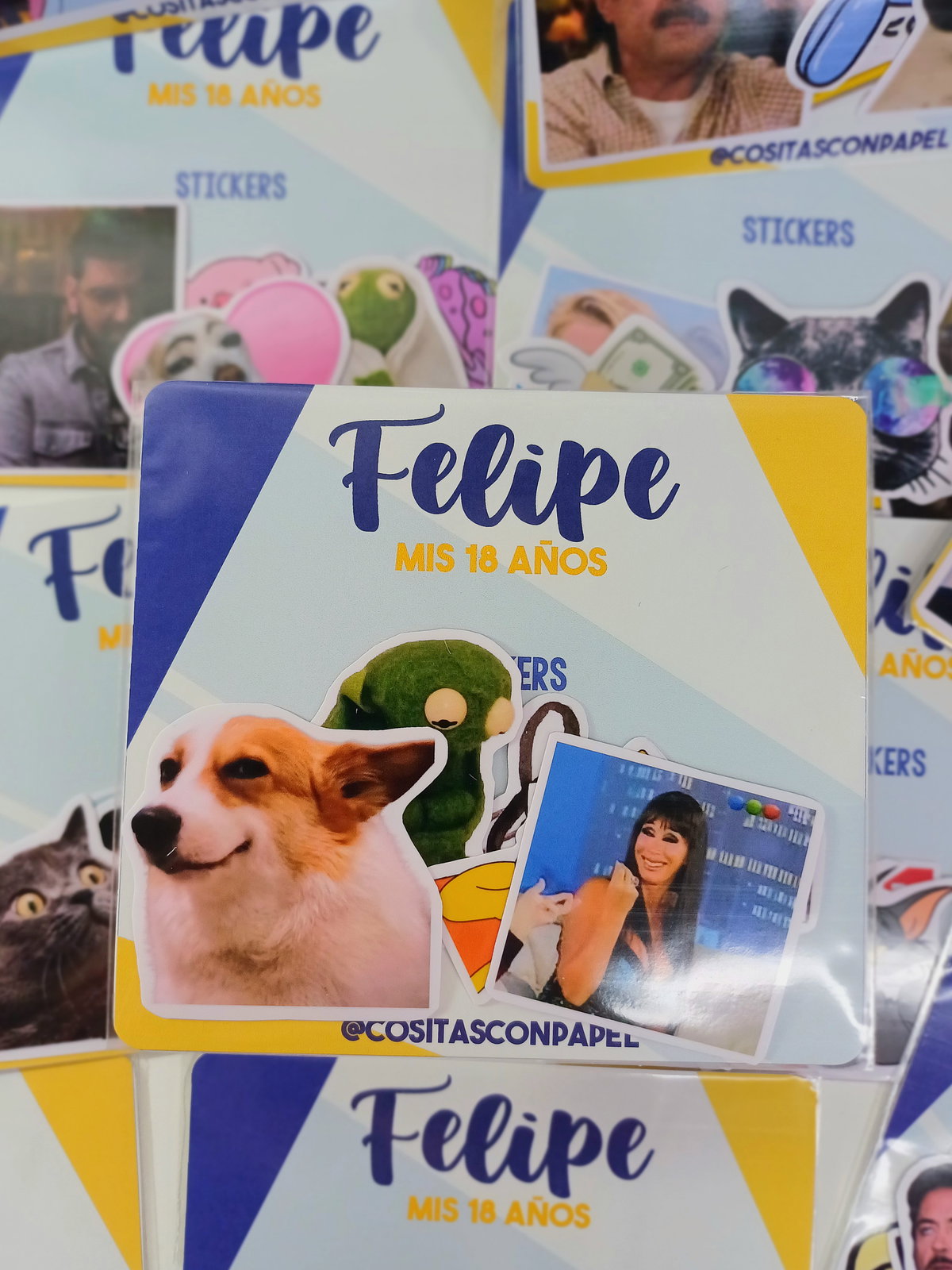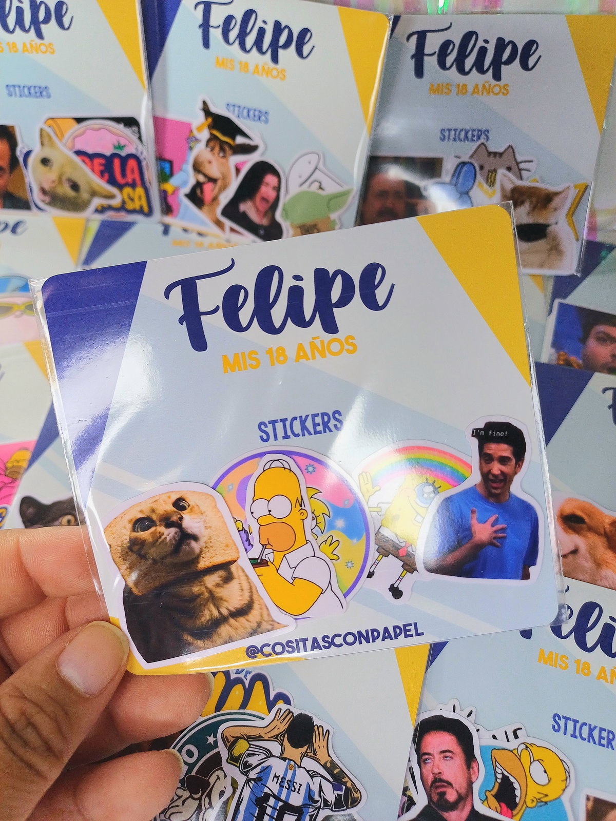 Incluye 5 stickers con tarjeta personalizada y bolsa transparente.