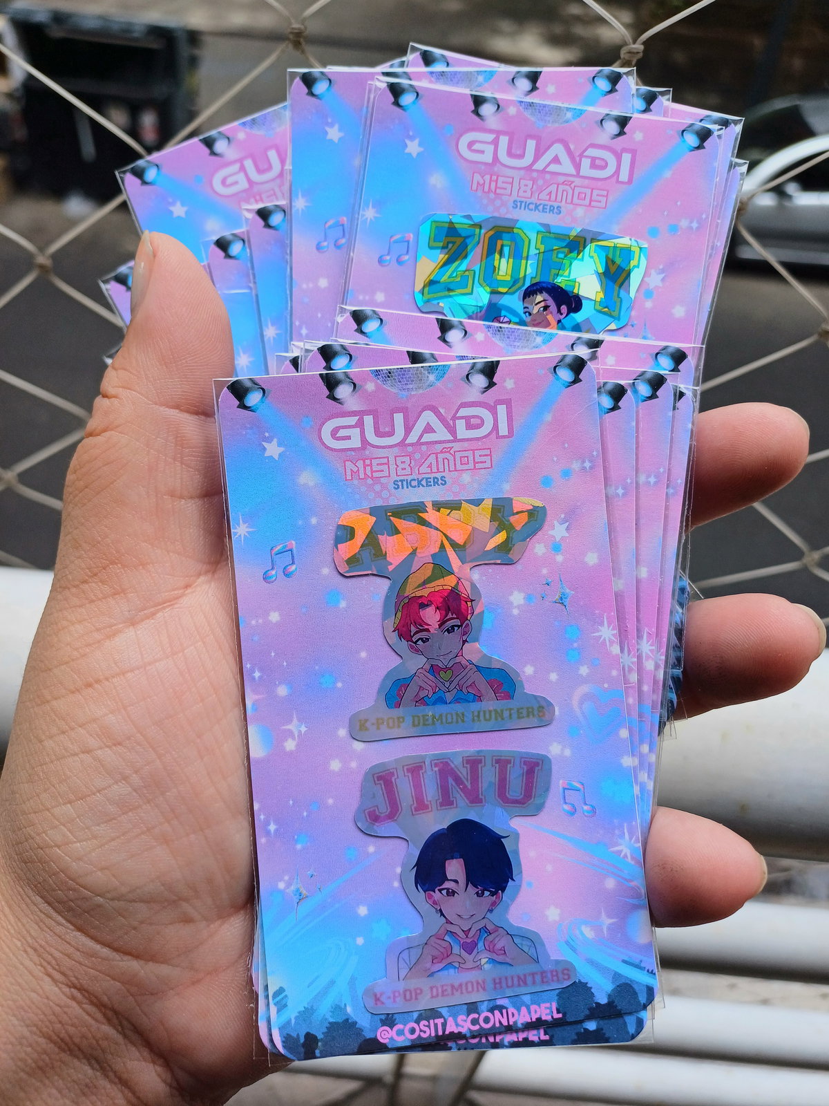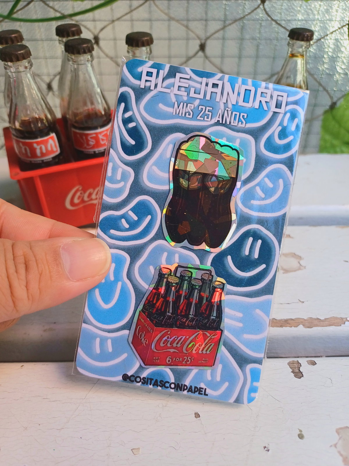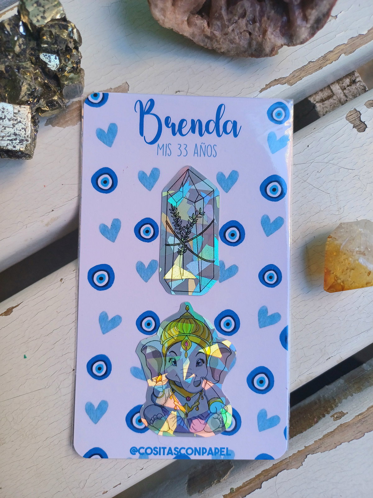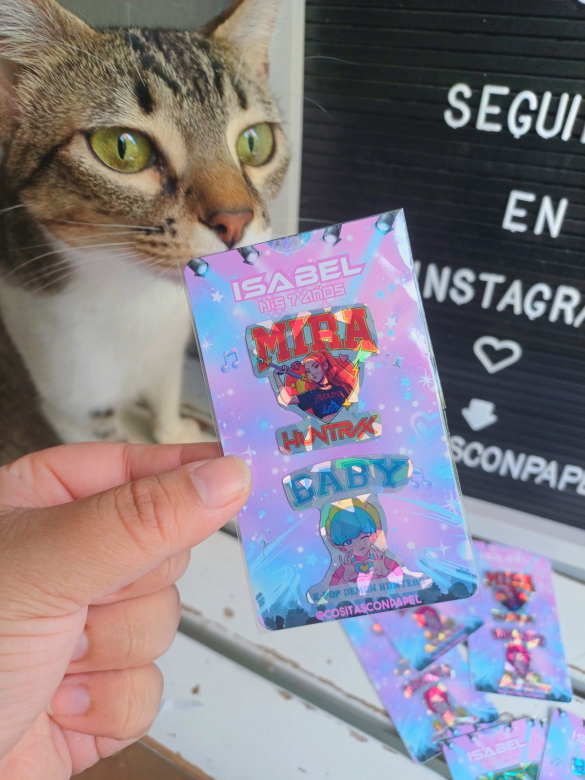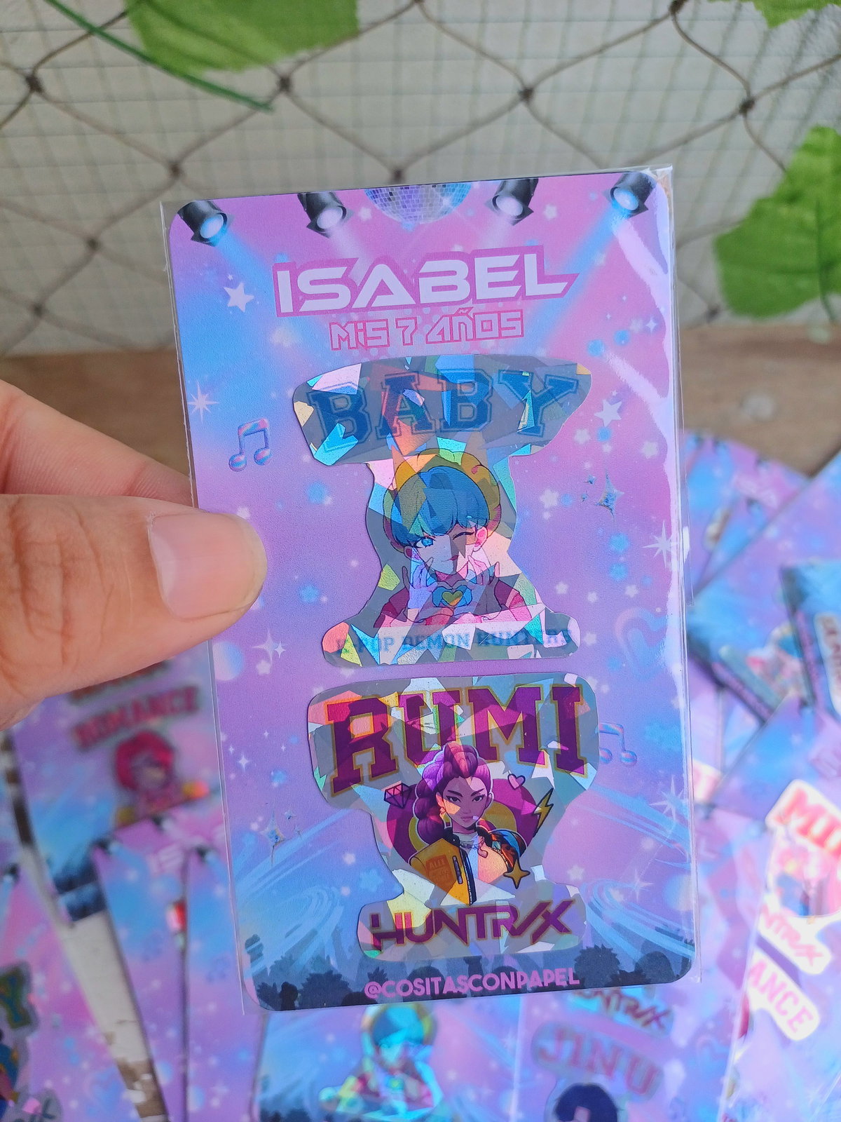 Incluye 2 stickers con tarjeta personalizada y bolsa transparente.